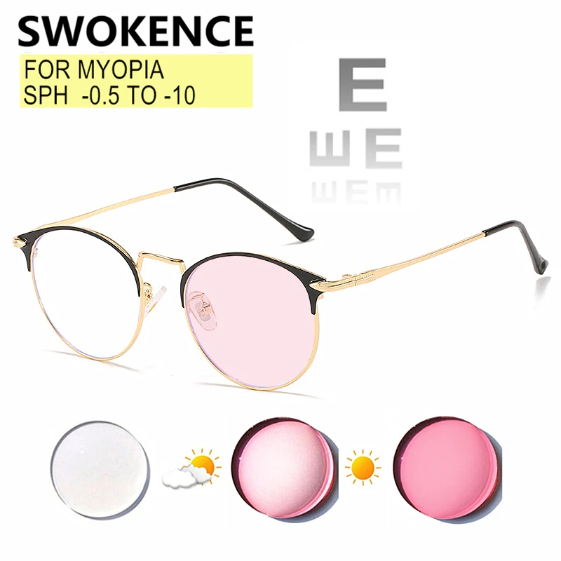 Swokence Nearsighted Glasses Sphere 0 5 To 10 Men Women Elegant Metal Frame Myopia Spectacles Anti Blue Ray Photochromic F042 Women S Reading Glasses Aliexpress